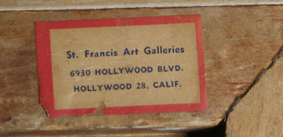 Ex. St. Francis Art Gallery, Hollywood, California (Original Gallery stickers attached to reverse)